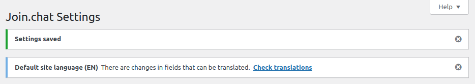 When one of these multi-language plugins is detected, a notification is displayed with a link to edit the translations in the Joinchat settings.