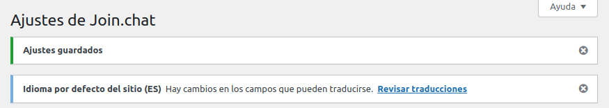 Cuando se detecta la presencia de uno de estos plugins multi-idioma se muestra una notificación con un enlace a la edición de las traducciones de los ajustes de Joinchat.